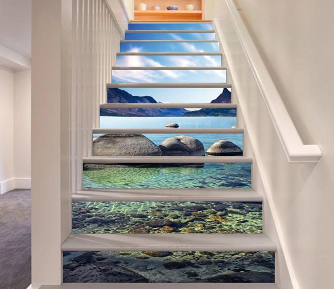 3D Mountains Lake Stones 796 Stair Risers