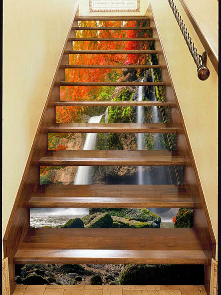 3D Pretty Trees Waterfalls 877 Stair Risers