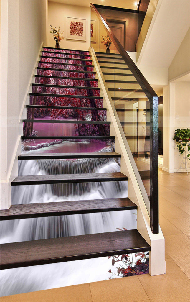 3D River Falls Red Trees 893 Stair Risers