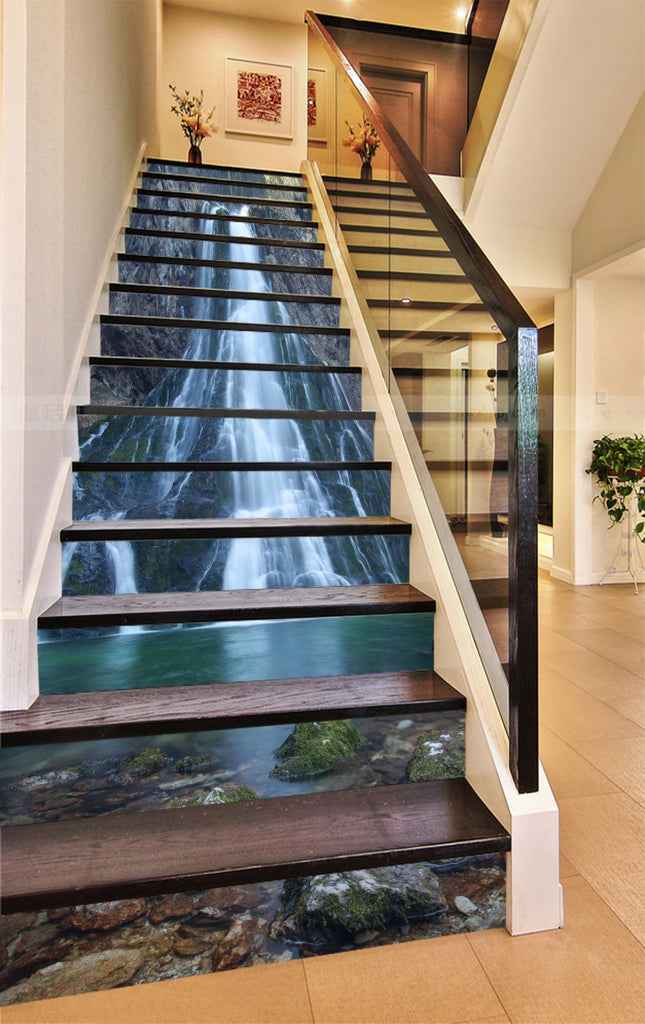 3D Secluded Waterfall 836 Stair Risers