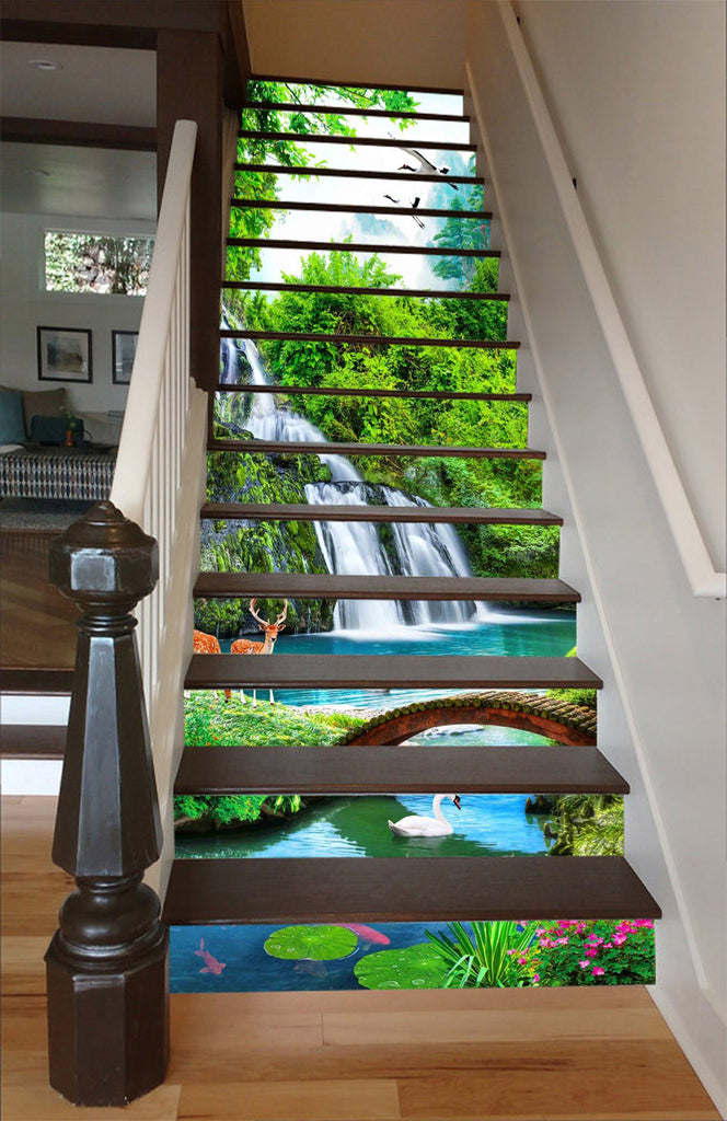 3D Waterfall Animals 1327 Stair Risers
