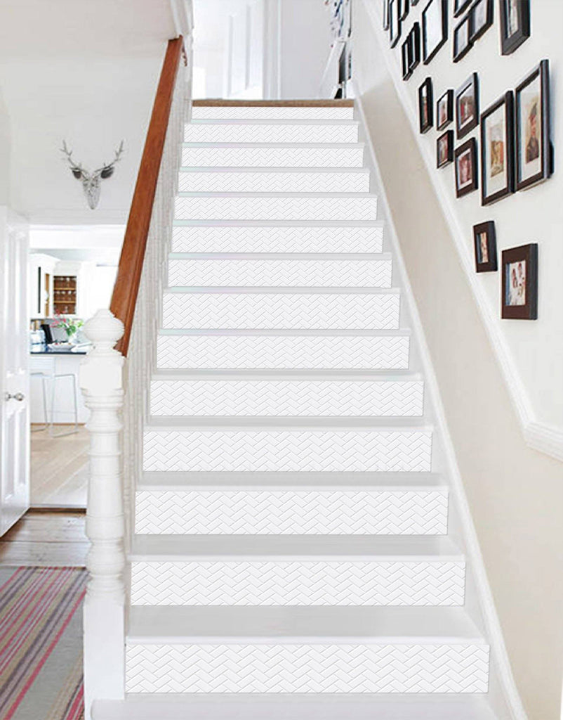 3D White Rectangle 516 Marble Tile Texture Stair Risers
