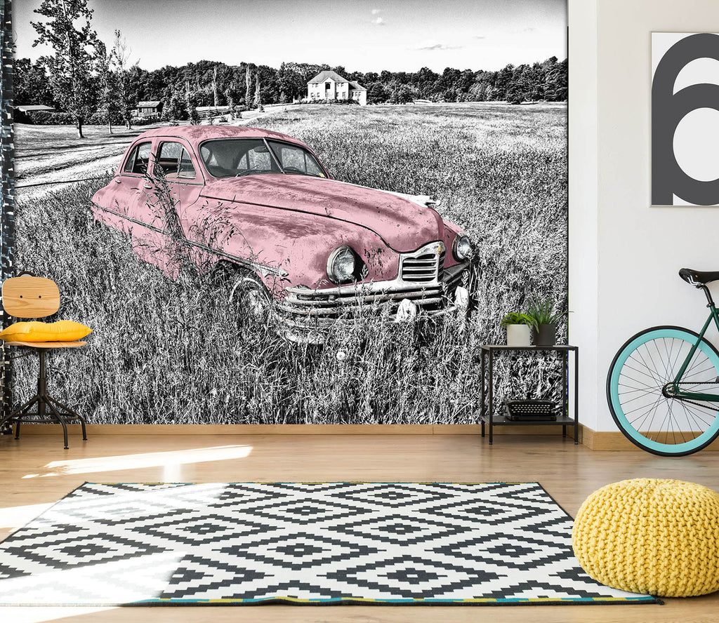 3D Abandoned Pink Car 293 Vehicle Wall Murals Zoe