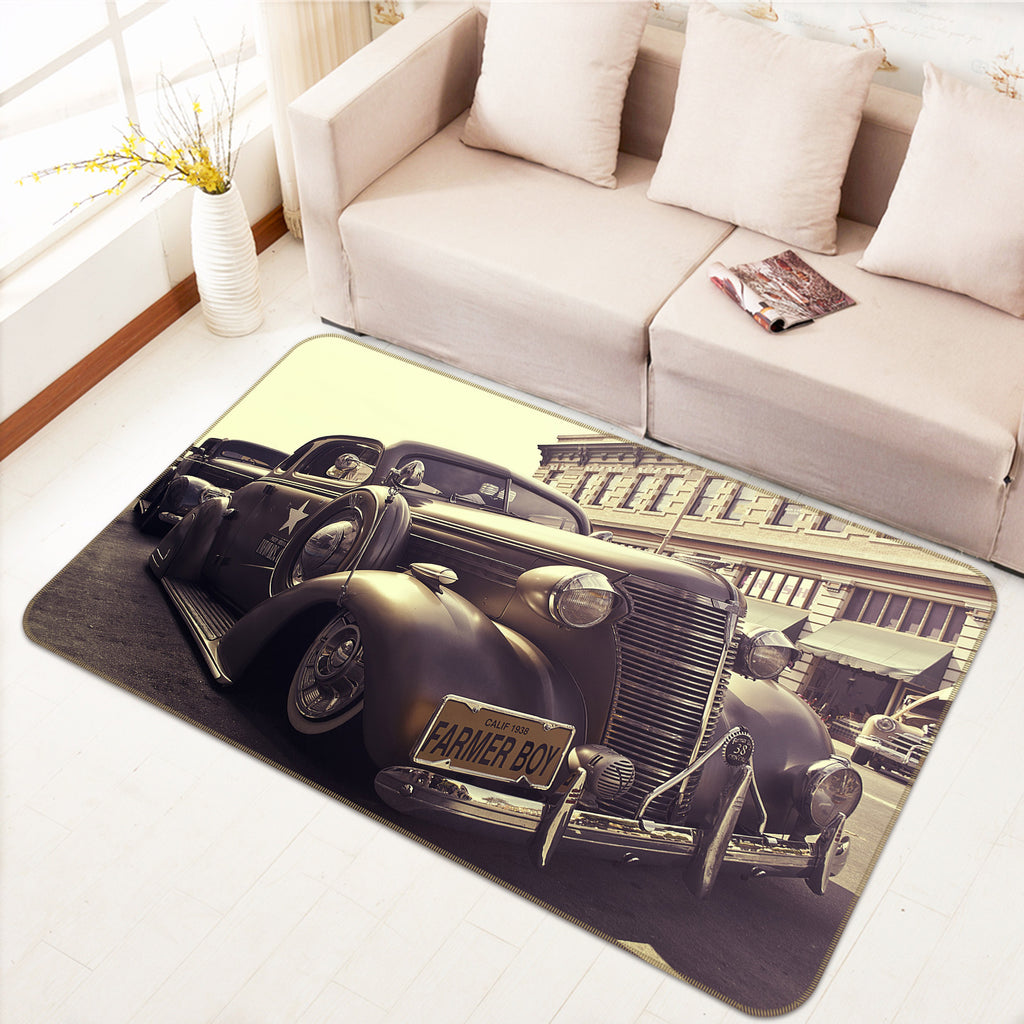 3D Black Vintage Car 68074 Vehicle Non Slip Rug Mat Sinsin