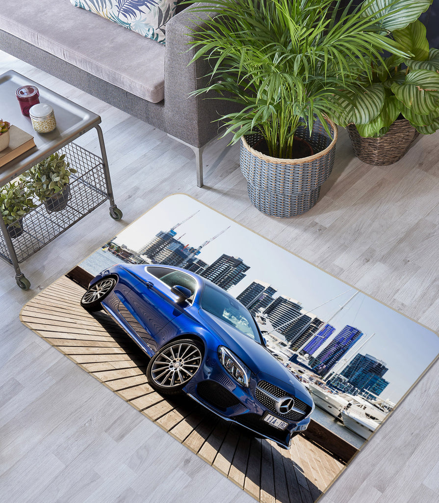3D Blue Car 42062 Vehicle Non Slip Rug Mat