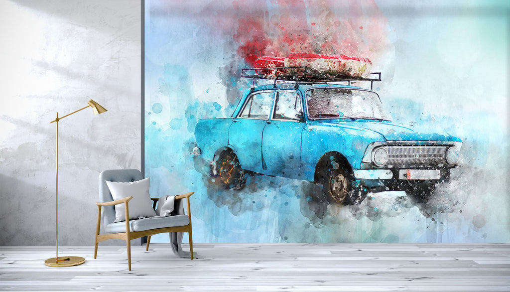 3D Blue Old Car 181 Vehicle Wall Murals Zoe