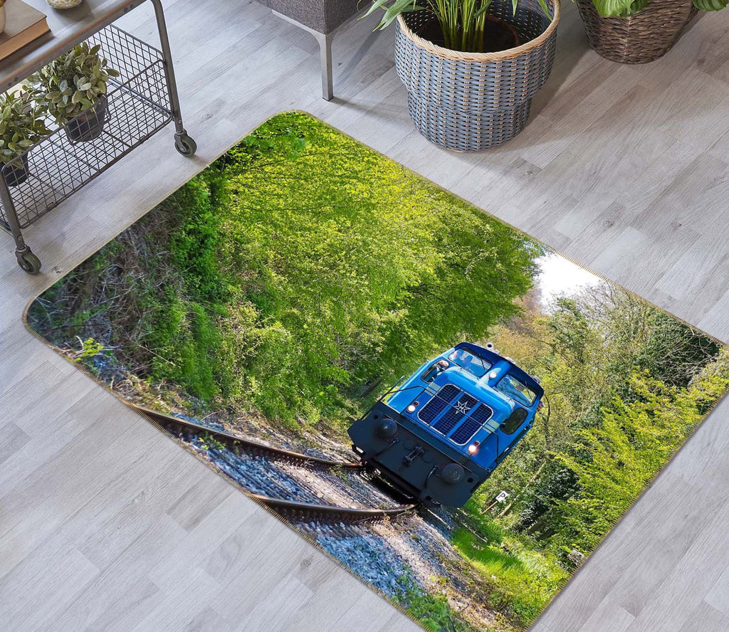 3D Blue Train 42014 Vehicle Non Slip Rug Mat