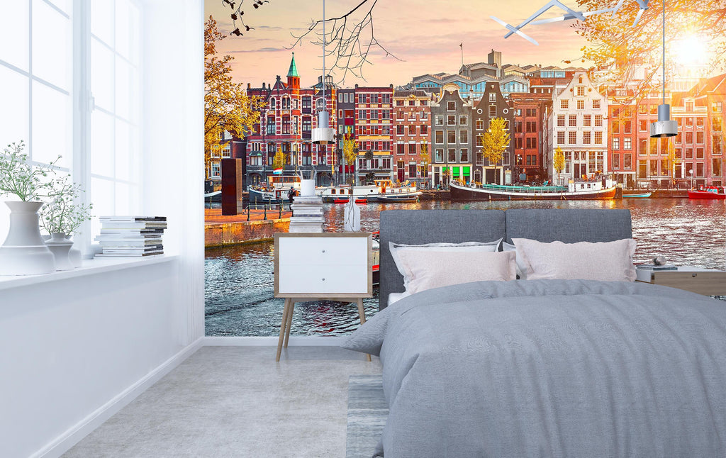 3D City Sunset Boat 416 Vehicle Wall Murals Zoe
