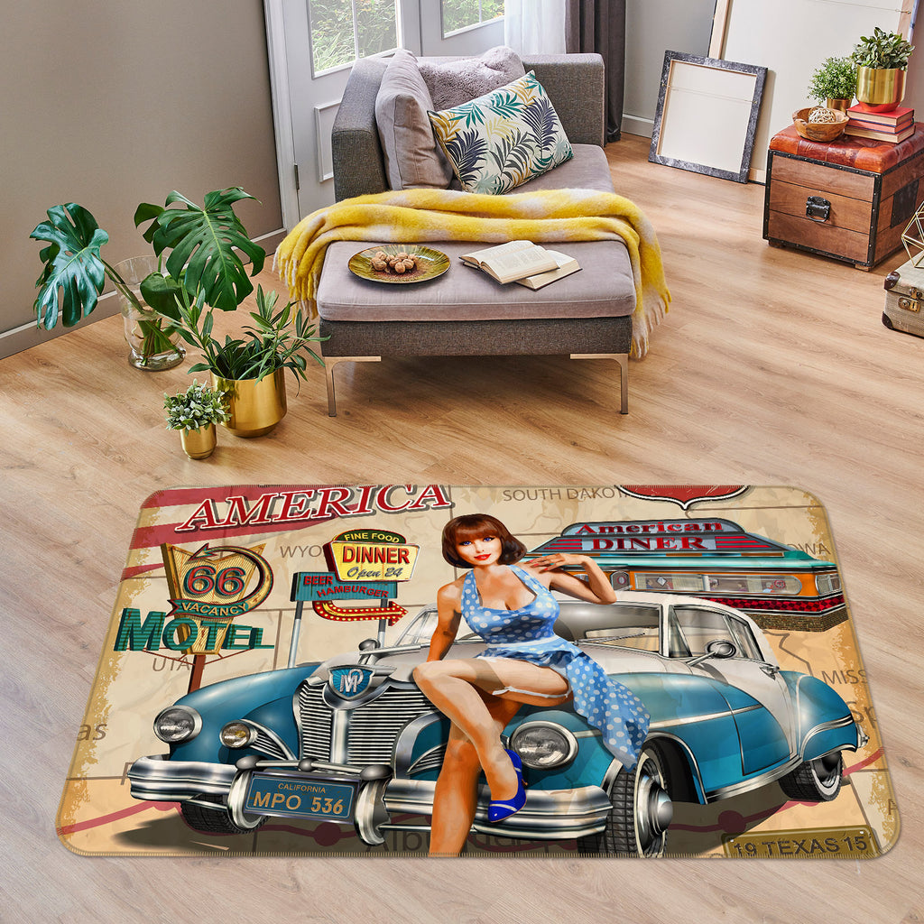 3D Retro Beauty Blue Car 68072 Vehicle Non Slip Rug Mat Sinsin