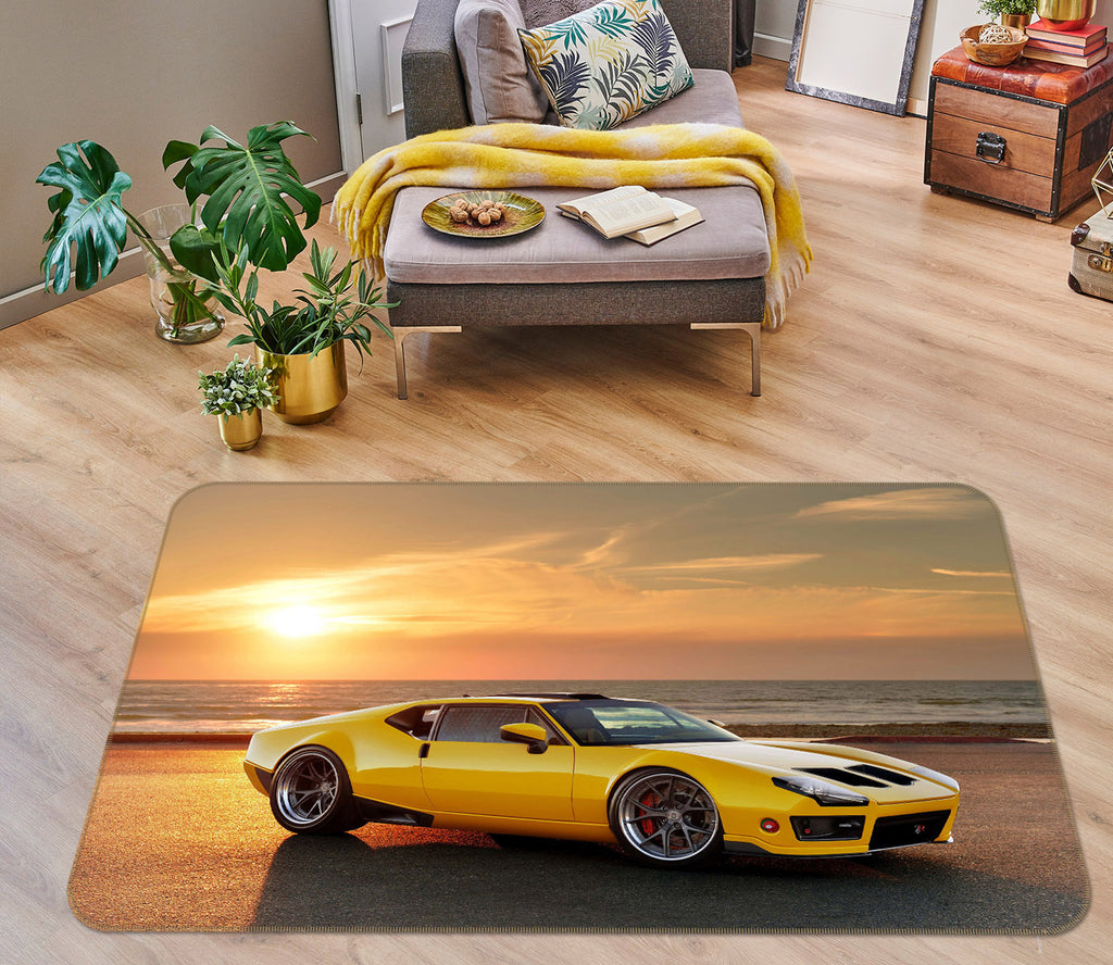 3D Seaside Yellow Car 42069 Vehicle Non Slip Rug Mat Sinsin