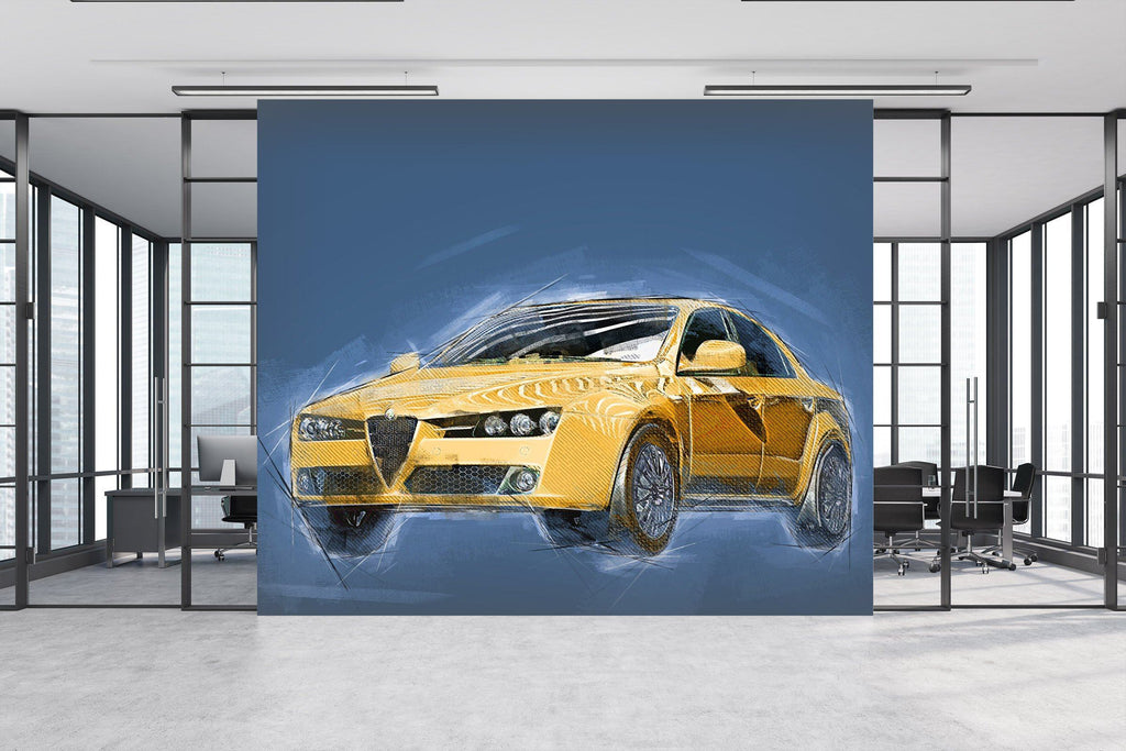 3D Small Yellow Car 971 Vehicle Wall Murals