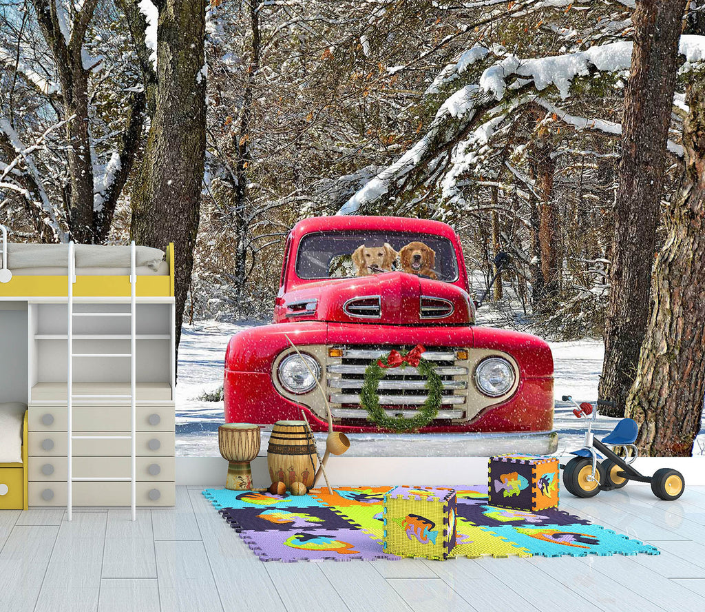3D Snow Dog Car 326 Vehicle Wall Murals