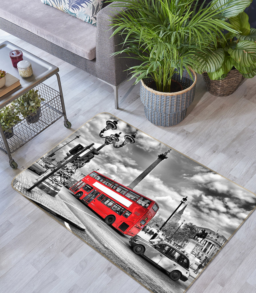 3D Street Red Double-Decker Bus 42023 Vehicle Non Slip Rug Mat Sinsin