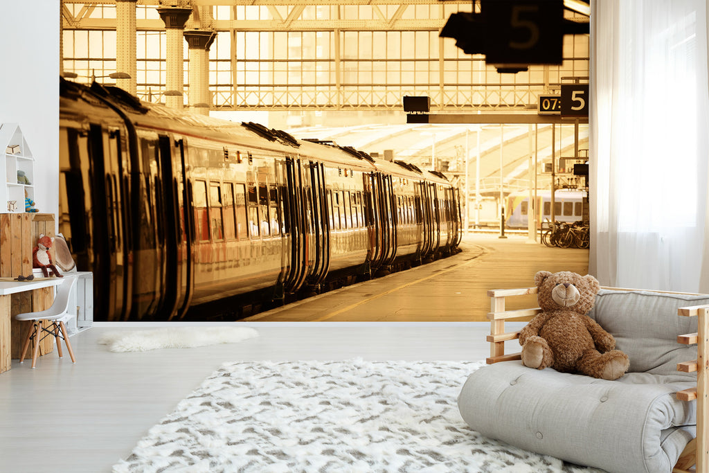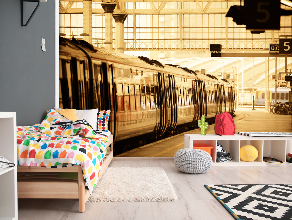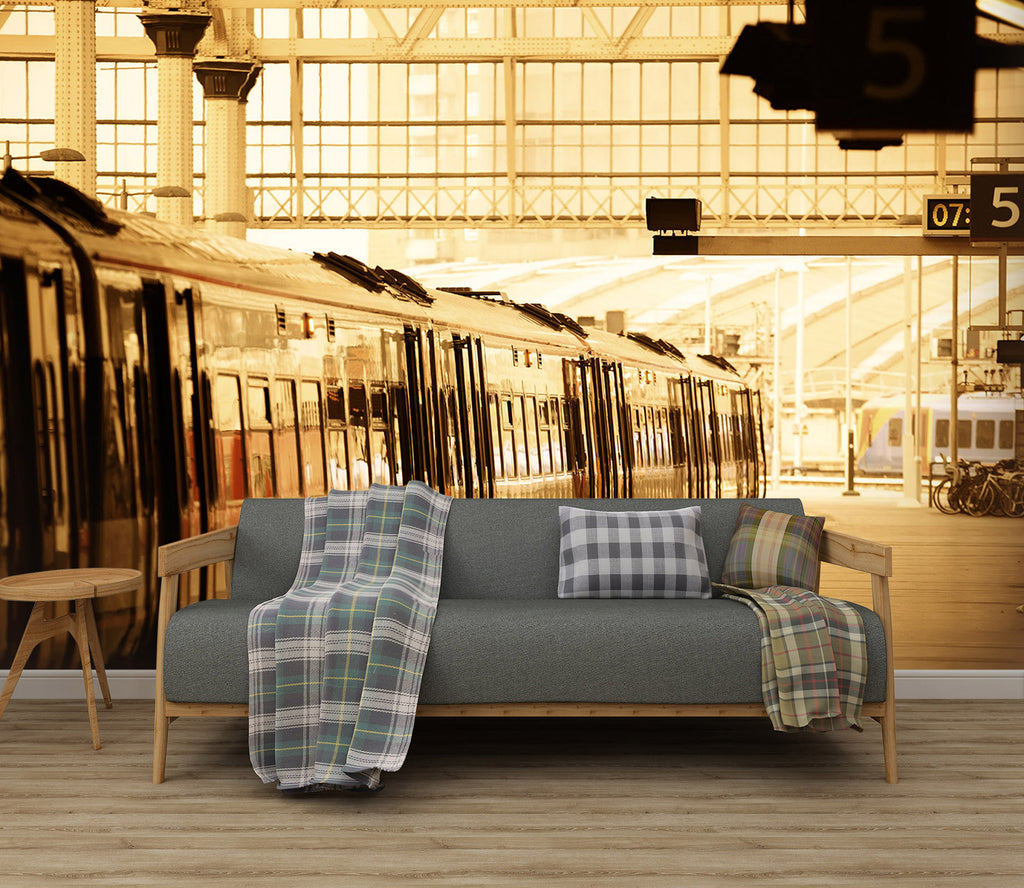 3D Sunset Train Station 028 Vehicle Wall Murals