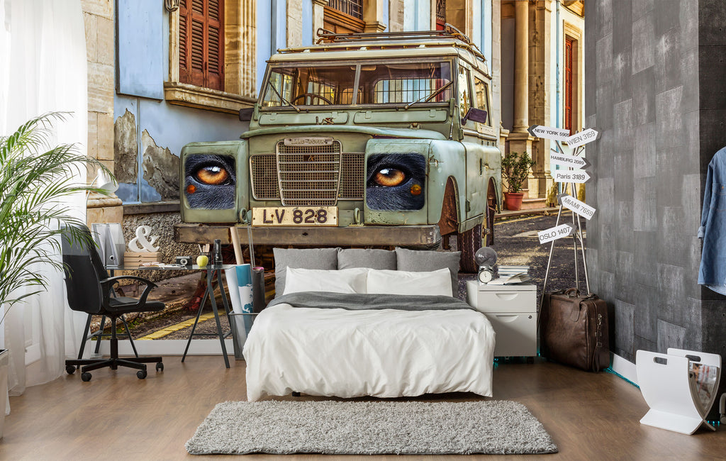 3D Vintage Green Car 231 Vehicle Wall Murals