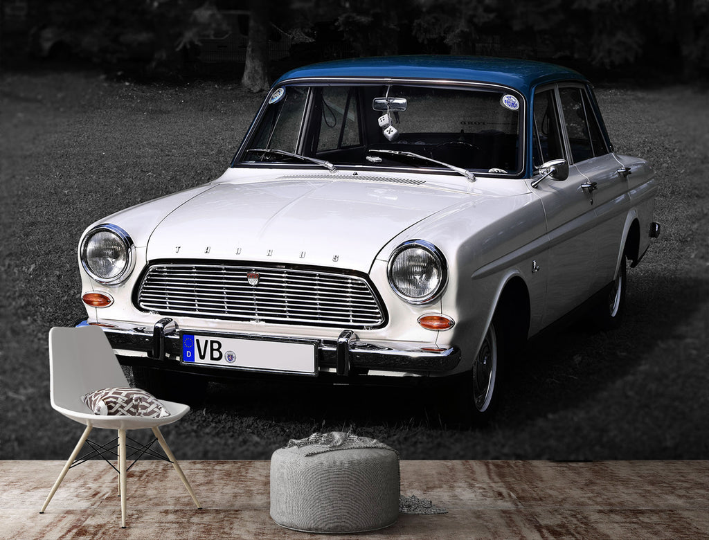 3D White Car 183 Vehicle Wall Murals