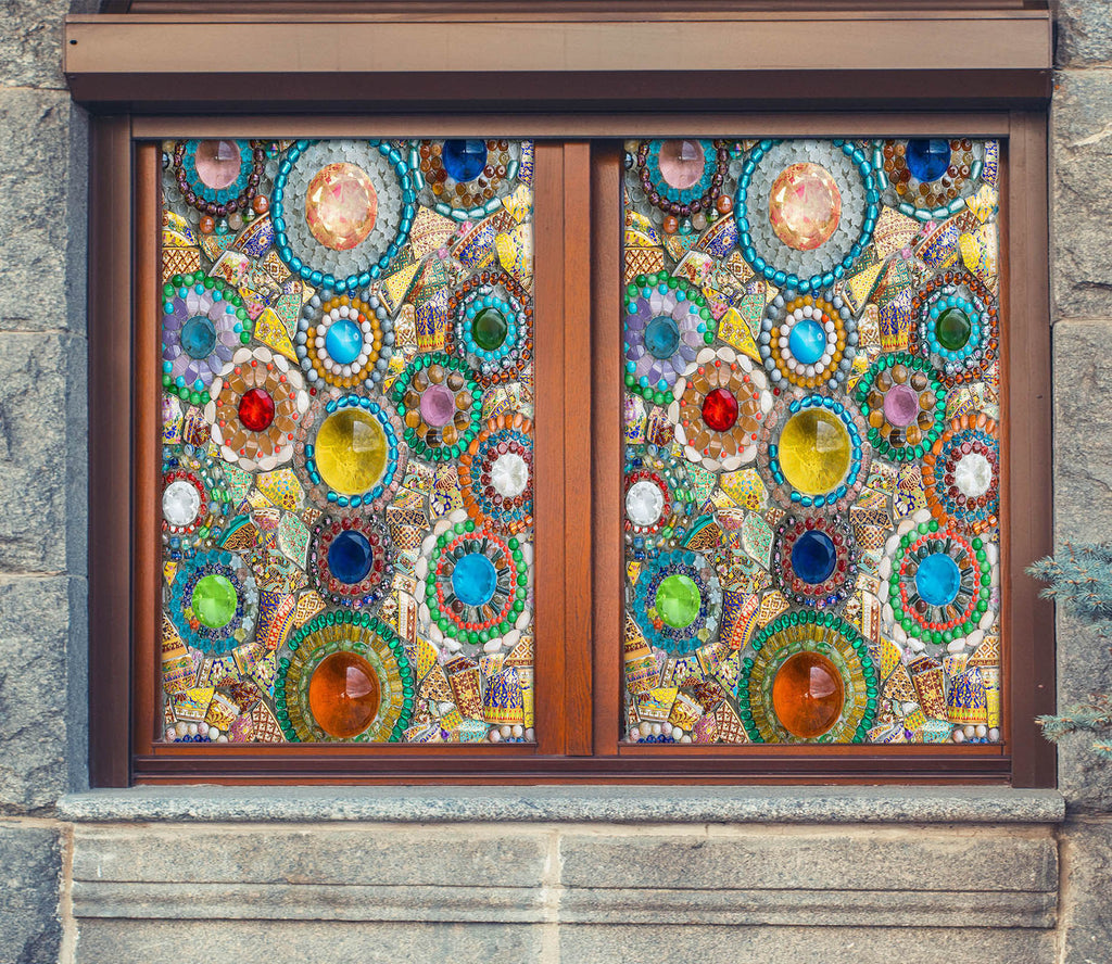 3D Colored Gems W1808 Window Film Print Sticker Cling Stained Glass UV Block