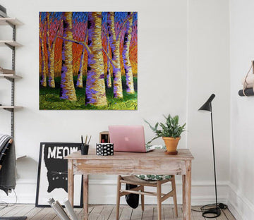 I'm an American artist whose bold contemporary paintings focus on joyful use of color, texture and movement, creating a low relief effect in paint- a hybrid between low relief sculpture, mosaic, and traditional painting. Two of my paintings are in the Cedar Rapids Museum of Art's permanent collection. My originals and commissioned work are available exclusively through the fine art galleries who represent my original and commissioned work. I am delighted to partner with AJ Wallpaper and bring you color and joy for your walls, your office, and your home.