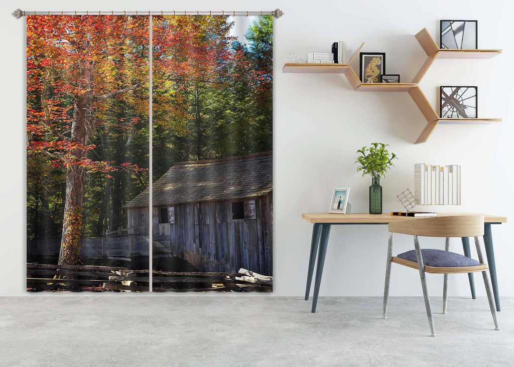 3D Autumn Maple Leaf 042 Kathy Barefield Curtain Curtains Drapes