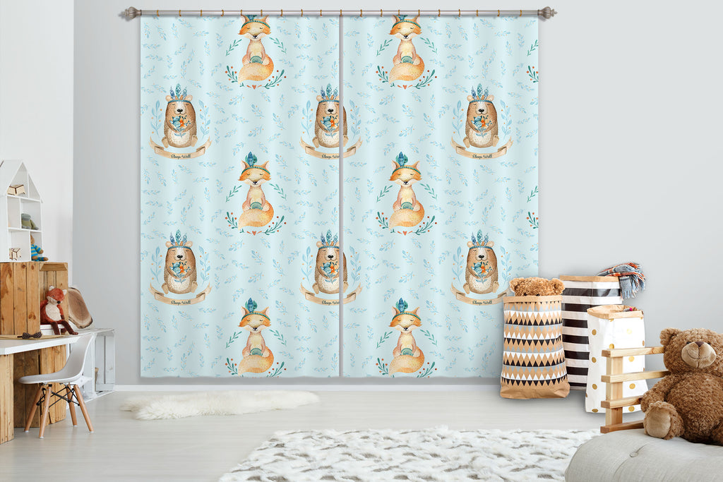 3D Bear Fox Flower 126 Uta Naumann Curtain Curtains Drapes Zoe
