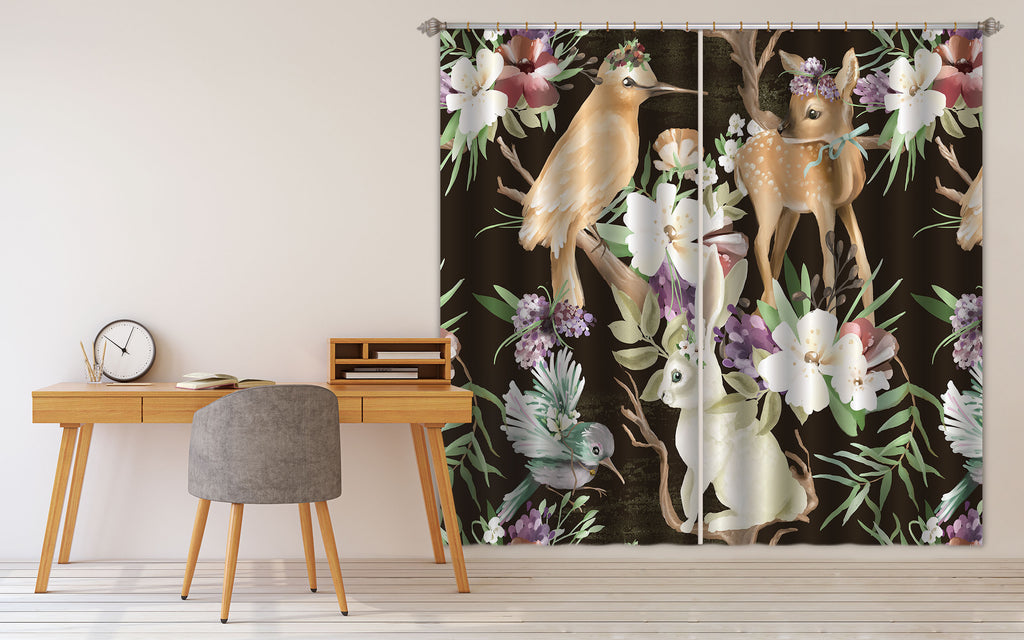 3D Bird Fawn Forest 062 Curtains Drapes Zoe