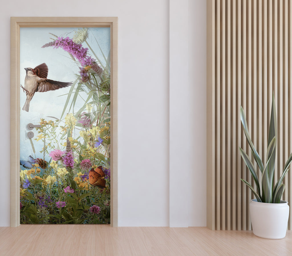 3D Bird Flowers Bush 107187 Beth Sheridan Door Mural Sinsin