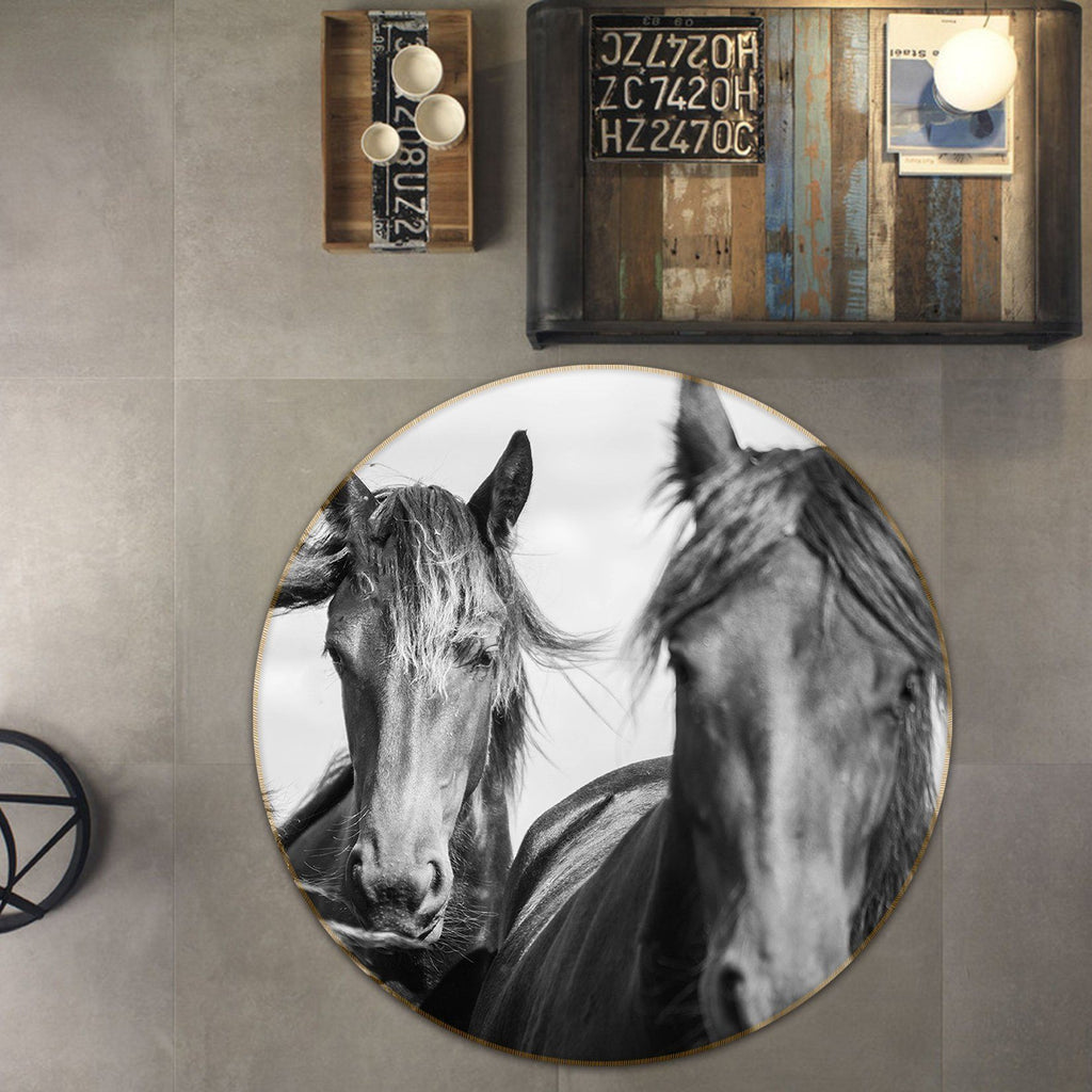 3D Black And White Horse 063 Animal Round Non Slip Rug Mat