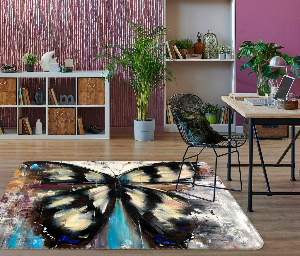 3D Black Butterfly 1102 Skromova Marina Rug Non Slip Rug Mat Amy