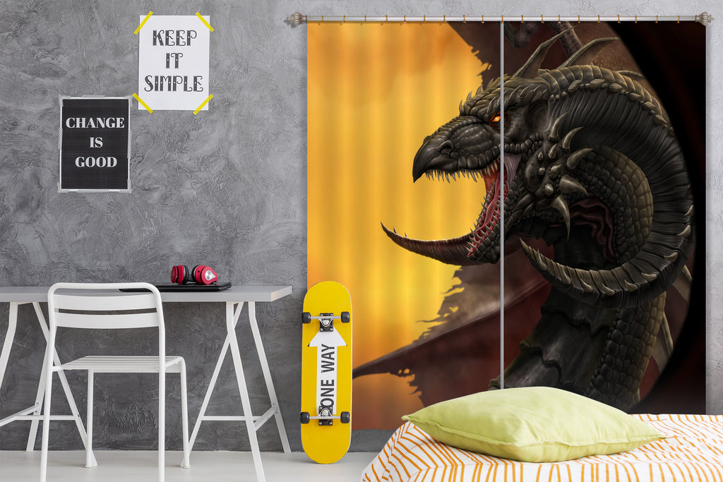 3D Black Dragon 5056 Tom Wood Curtain Curtains Drapes