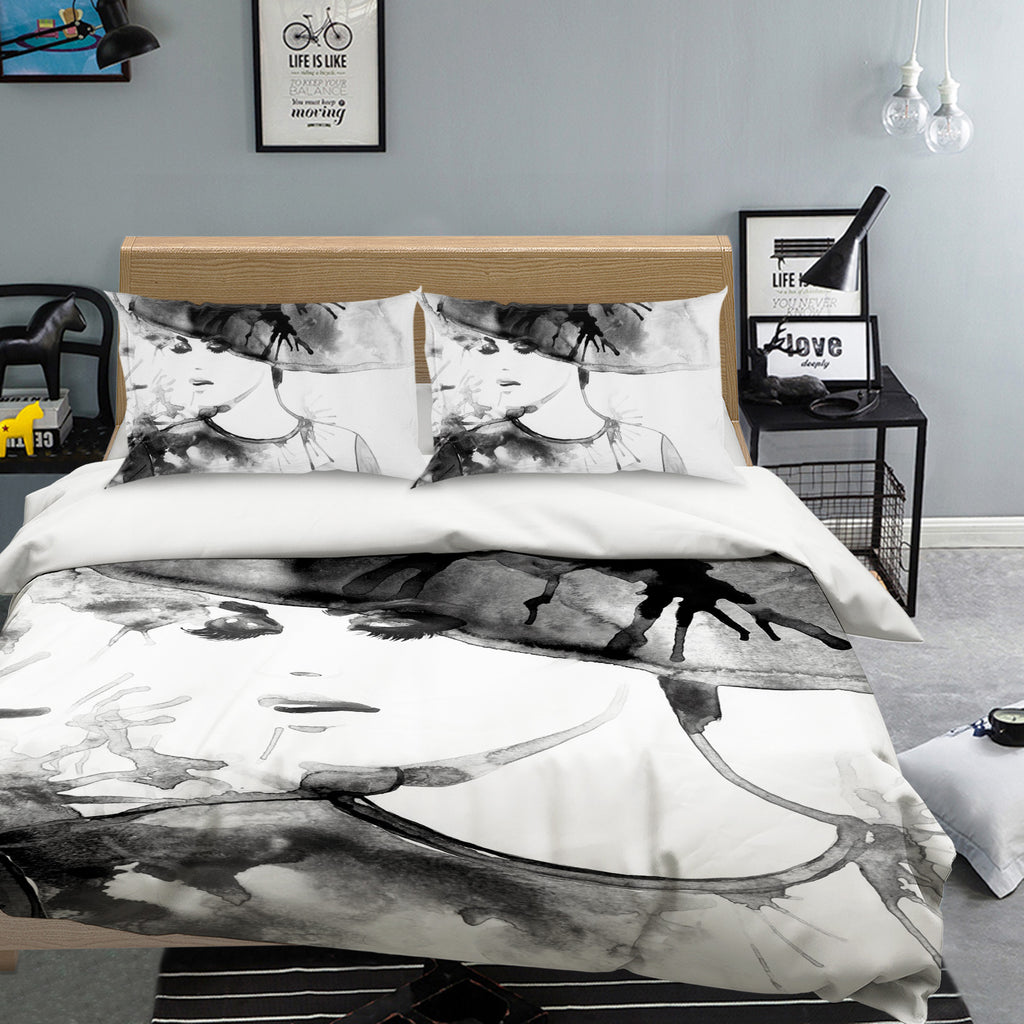 3D Black Hat Woman 019 Bed Pillowcases Quilt