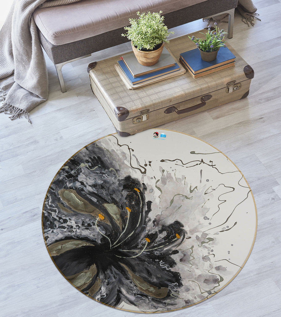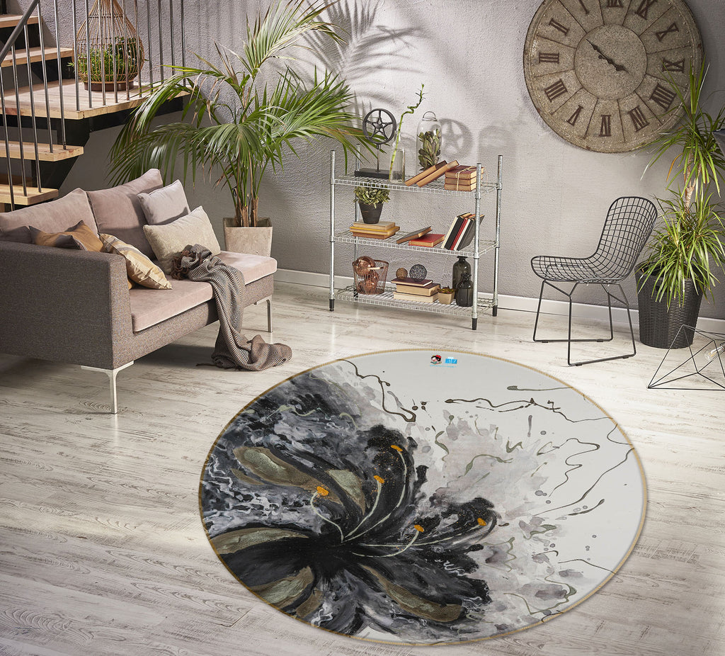 3D Black Ink Flower 841 Skromova Marina Rug Round Non Slip Rug Mat Amy
