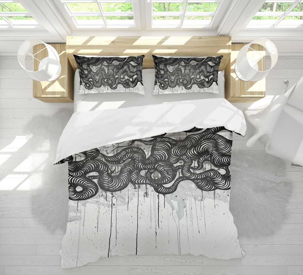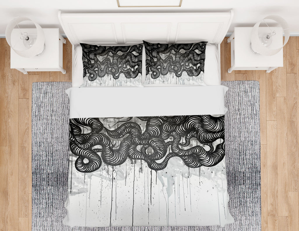 Introducing our beautiful black watercolor bedding set, perfect for adding a touch of modern elegance to your bedroom. Our high-quality bedding is made with soft and comfortable materials, providing you with a cozy and restful sleep. The black watercolor art is uniquely designed to add a touch of sophistication to any room. Our bedding set includes a duvet cover and pillowcases, making it easy to transform your bedroom into a stylish retreat. Our product is easy to care for and is designed to last for years to come. Shop now and add a touch of luxury to your bedroom with our black watercolor bedding set.