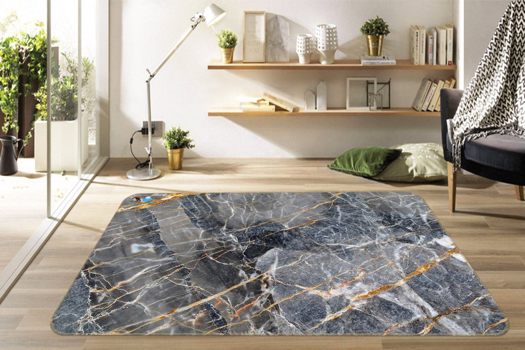 3D Black Slate Crack 19 Non Slip Rug Mat
