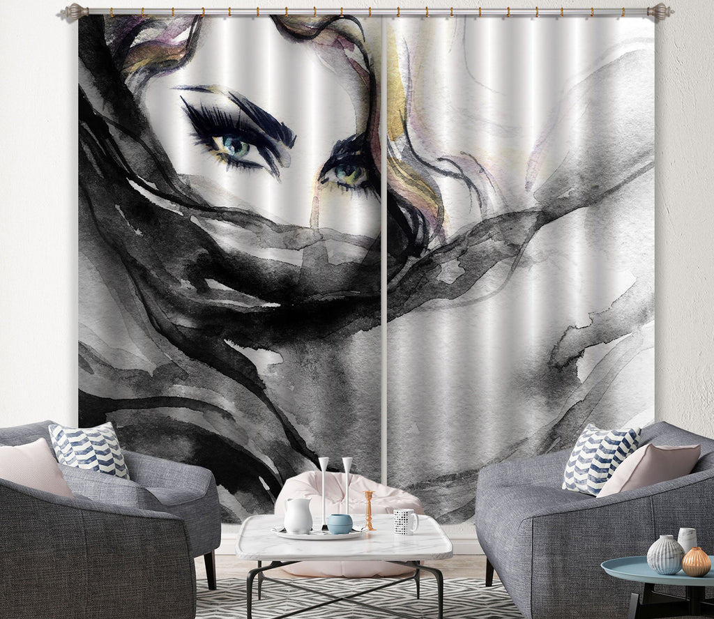 3D Black Yarn Woman 046 Curtains Drapes Zoe