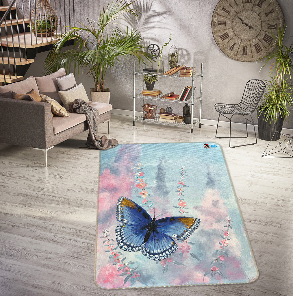 3D Blue Butterfly 9710 Marina Zotova Rug Non Slip Rug Mat Sinsin