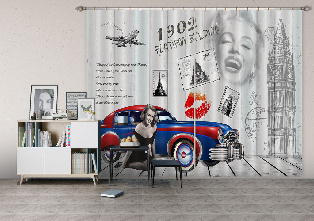 3D Blue Car 805 Curtains Drapes Dai