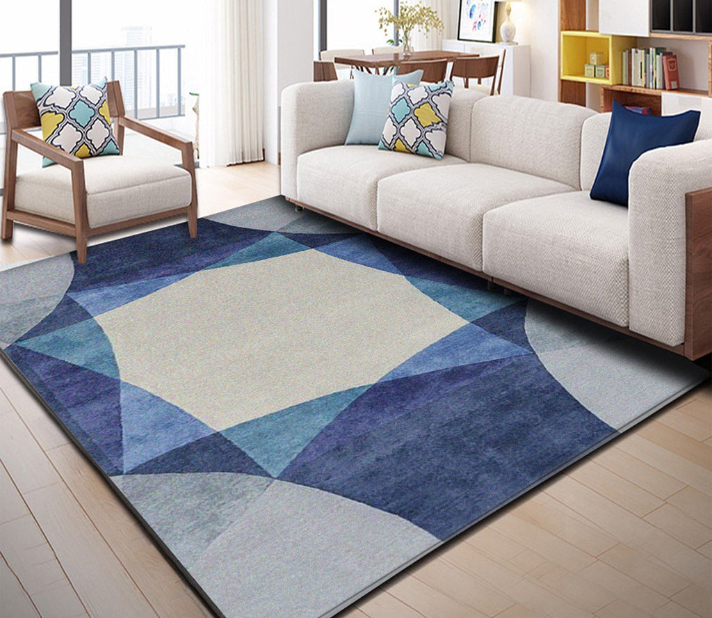 3D Blue Geometry WG136 Non Slip Rug Mat