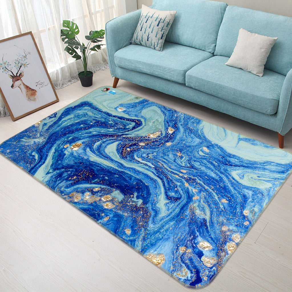 3D Blue Gradient Wave 47 Non Slip Rug Mat