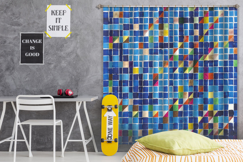 3D Blue Square 278 Allan P. Friedlander Curtain Curtains Drapes Dai