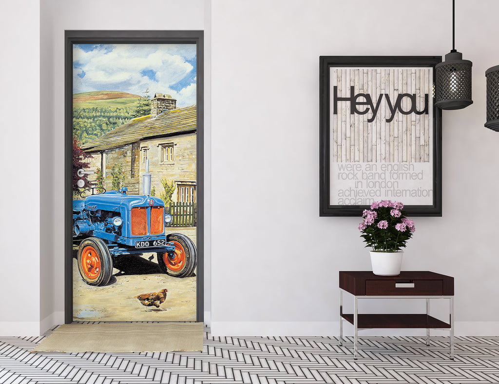 3D Blue Tractor Chicken 103160 Trevor Mitchell Door Mural Sinsin