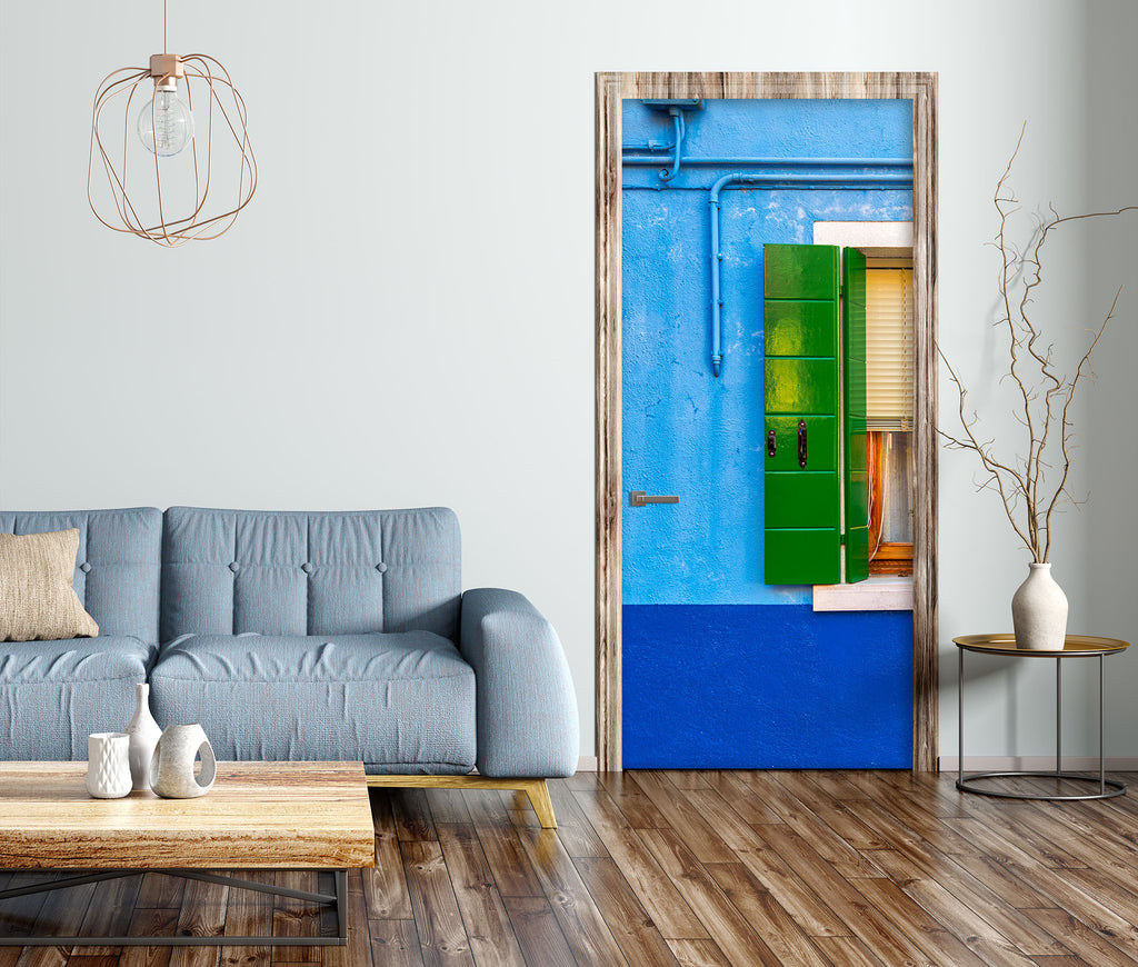 3D Blue Wall Green Window 12218 Marco Carmassi Door Mural Sinsin