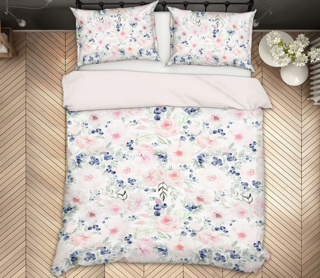 3D Blueberry Pink Flower 102 Uta Naumann Bedding Bed Pillowcases Quilt
