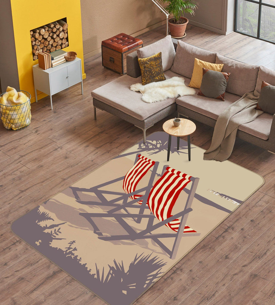 3D Bournemouth Red Deckchairs 1106 Steve Read Rug Non Slip Rug Mat Dai
