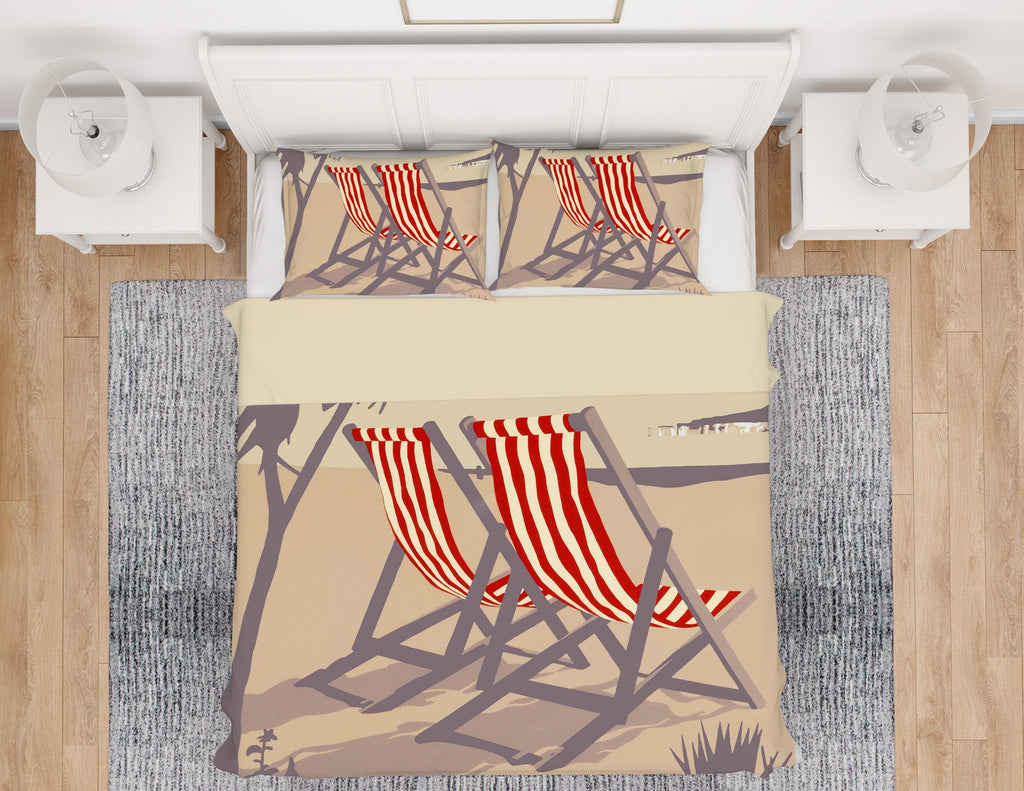 3D Bournemouth Red Deckchairs 2007 Steve Read Bedding Bed Pillowcases Quilt