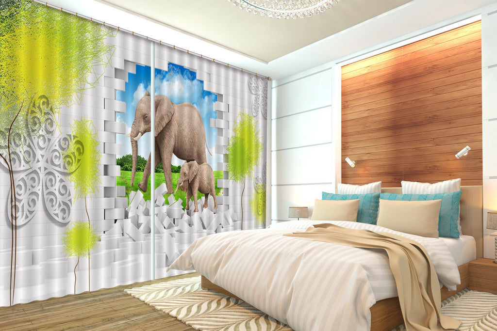 3D Bricks Elephants 415 Beach Curtains Drapes