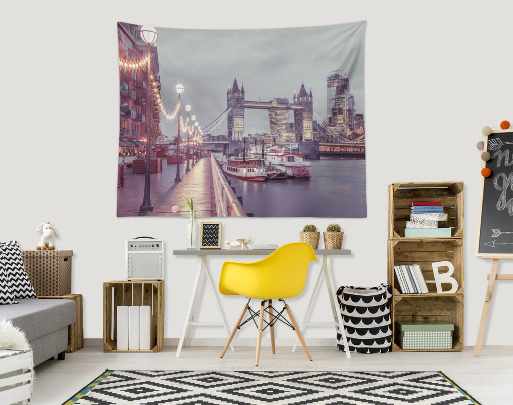 3D Bridge River Boat 116132 Assaf Frank Tapestry Hanging Cloth Hang Sinsin