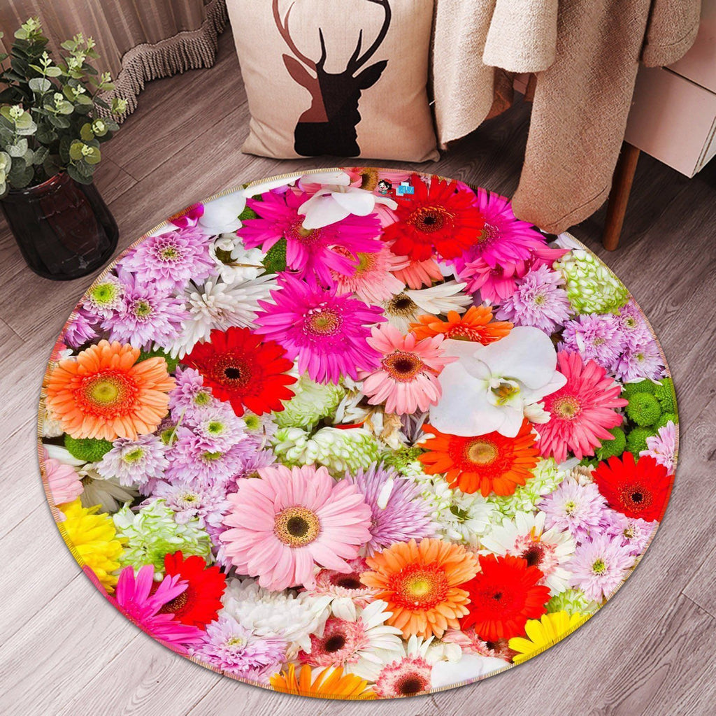 3D Bright Flowers 99 Round Non Slip Rug Mat