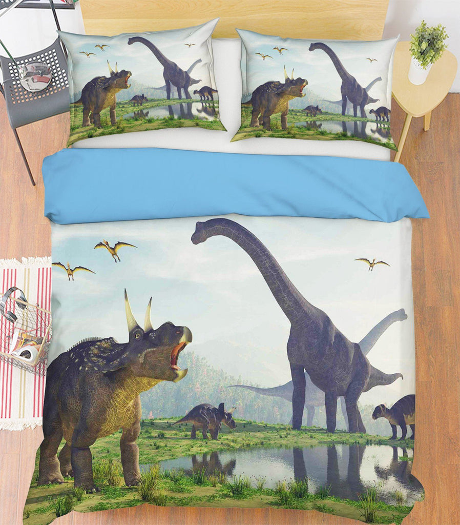 3D Brontosaurus Horned Dragon 099 Bed Pillowcases Quilt