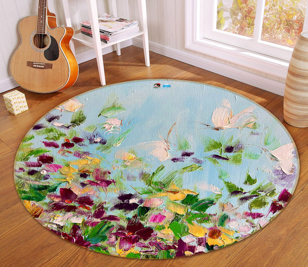 3D Butterfly Garden 901 Skromova Marina Rug Round Non Slip Rug Mat Amy