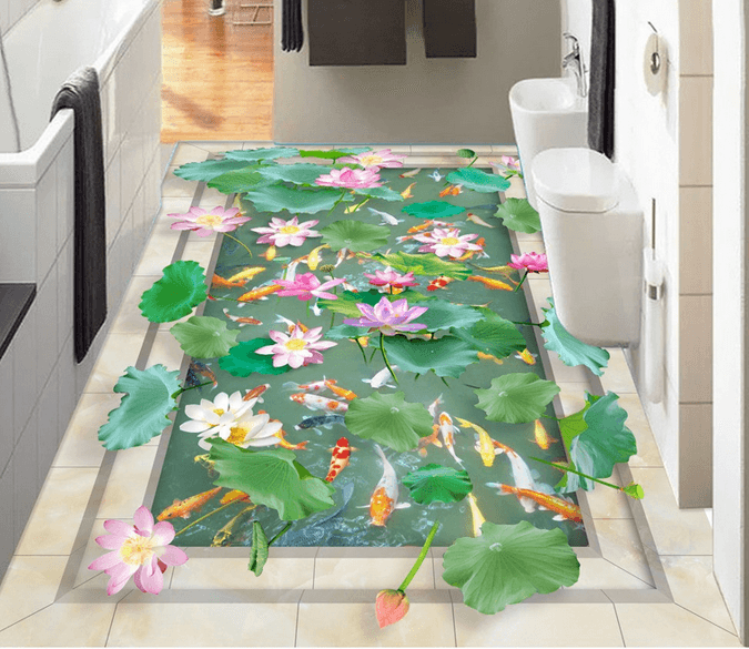 3D Charming Lotus Pond Floor Mural